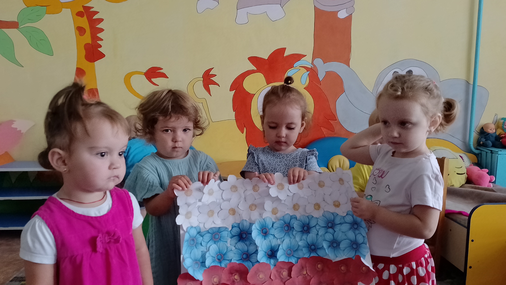 22.08.2025 года. В младшей группе « Капельки» прошло увлекательное путешествие по цветной полянке. В ходе мероприятия дети собрали на полянке цветы, тем самым закрепили основной спектр цветов.